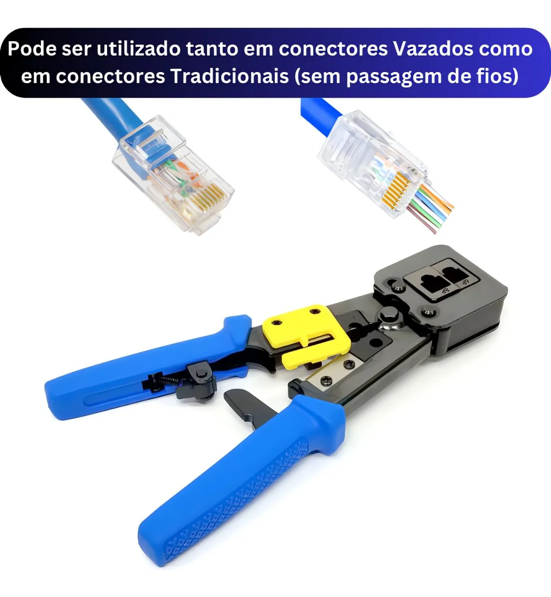 Altamente recomendado para as equipes de instalação de cabeamento de rede ou provedores de Internet, os conectores de rede do tipo crimpa fácil EZ crimp, são uma novidade no mercado e permitem uma maior confiabilidade na crimpagem dos conectores RJ45.
